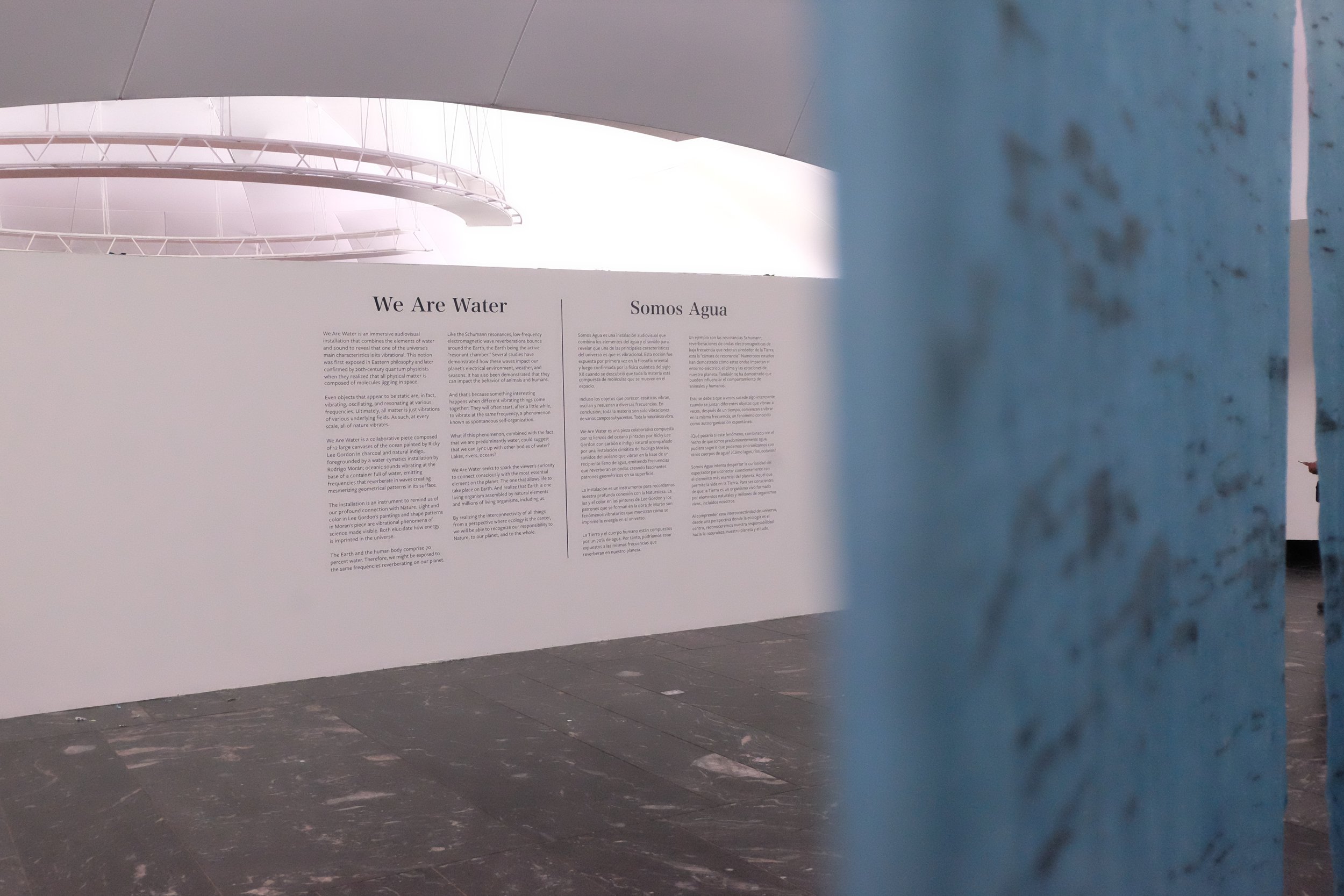 We Are Water was an immersive audiovisual installation that combined the elements of water and sound to reveal that one of the universe’s main characteristics is its vibrational. This notion was first exposed in Eastern philosophy and later confirmed by 20th-century quantum physicists when they realized that all physical matter is composed of molecules jiggling in space.